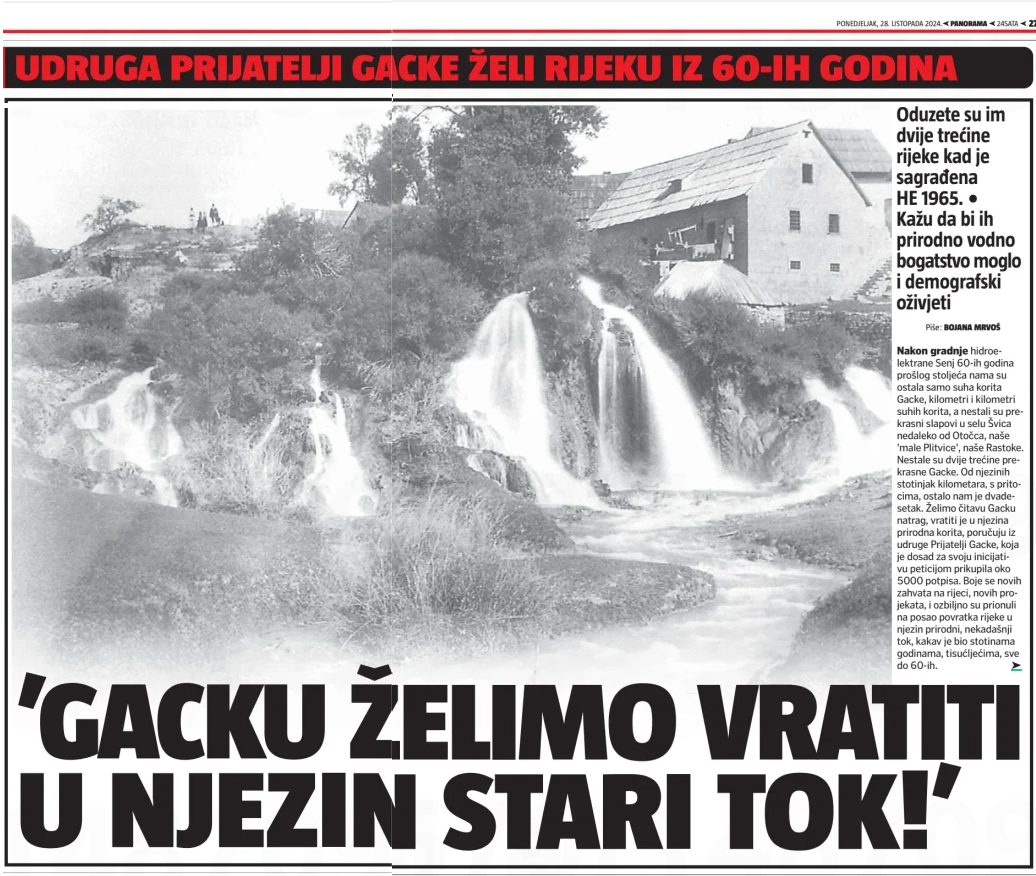 Ekocid na Gacki i isušivanje dvije trećine vodotoka uslijed izgradnje Hidroelektrane Senj